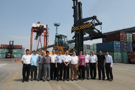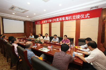 6月23日上午,PA视讯官网(上海)叉车有限公司、上海国际港务集团有限公司、中海码头发展有限公司及上海港中海集装箱码头有限公司联合举行了42吨重箱堆高机交机仪式。