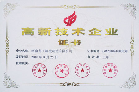 经河南省科学技术厅、河南省财政厅、河南省国家税务局、河南省地方税务局联合审查,日前河南机械被以上四部门认定为河南省“高新技术企业”。