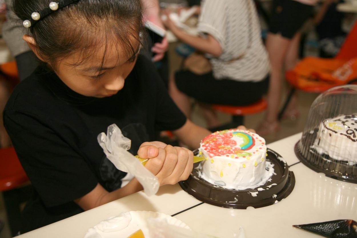 参观结束后,小朋友们来到活动设置的蛋糕DIY制作现场,展开了一场别开生面的蛋糕制作“比赛”。许多小朋友面对蛋糕的美食诱惑,作品还未出炉就已抵挡不住,品尝了起来。“比赛”充满了童趣和欢笑,也增进了父母与孩子的情感交流。福建机械总调室的小林不由称赞“这个‘六·一’过得真有意义!”