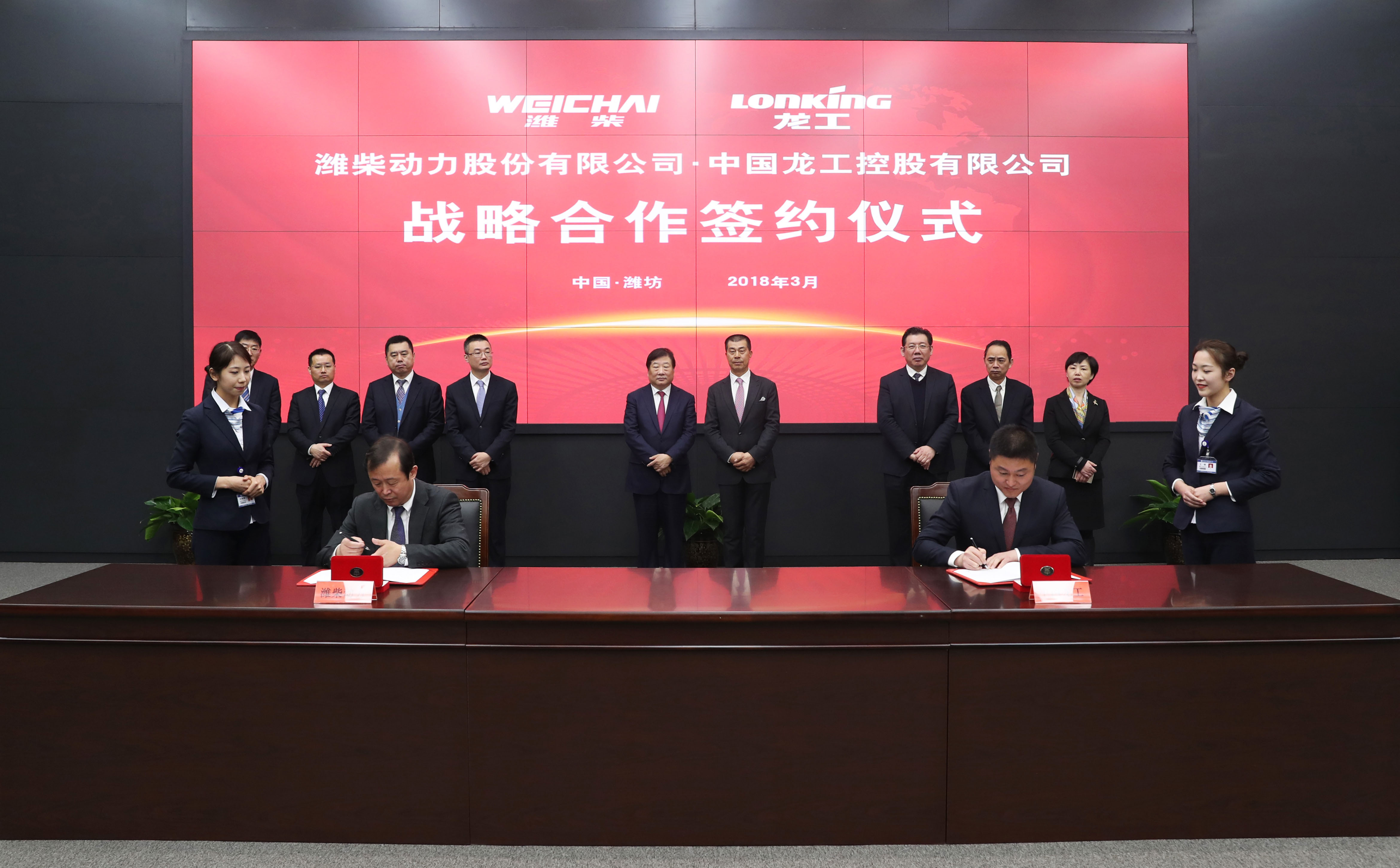 中国PA视讯官网控股有限公司常务副总裁陈超先生和潍柴动力执行CEO张泉先生代表双方分别在《战略合作协议》上签字。