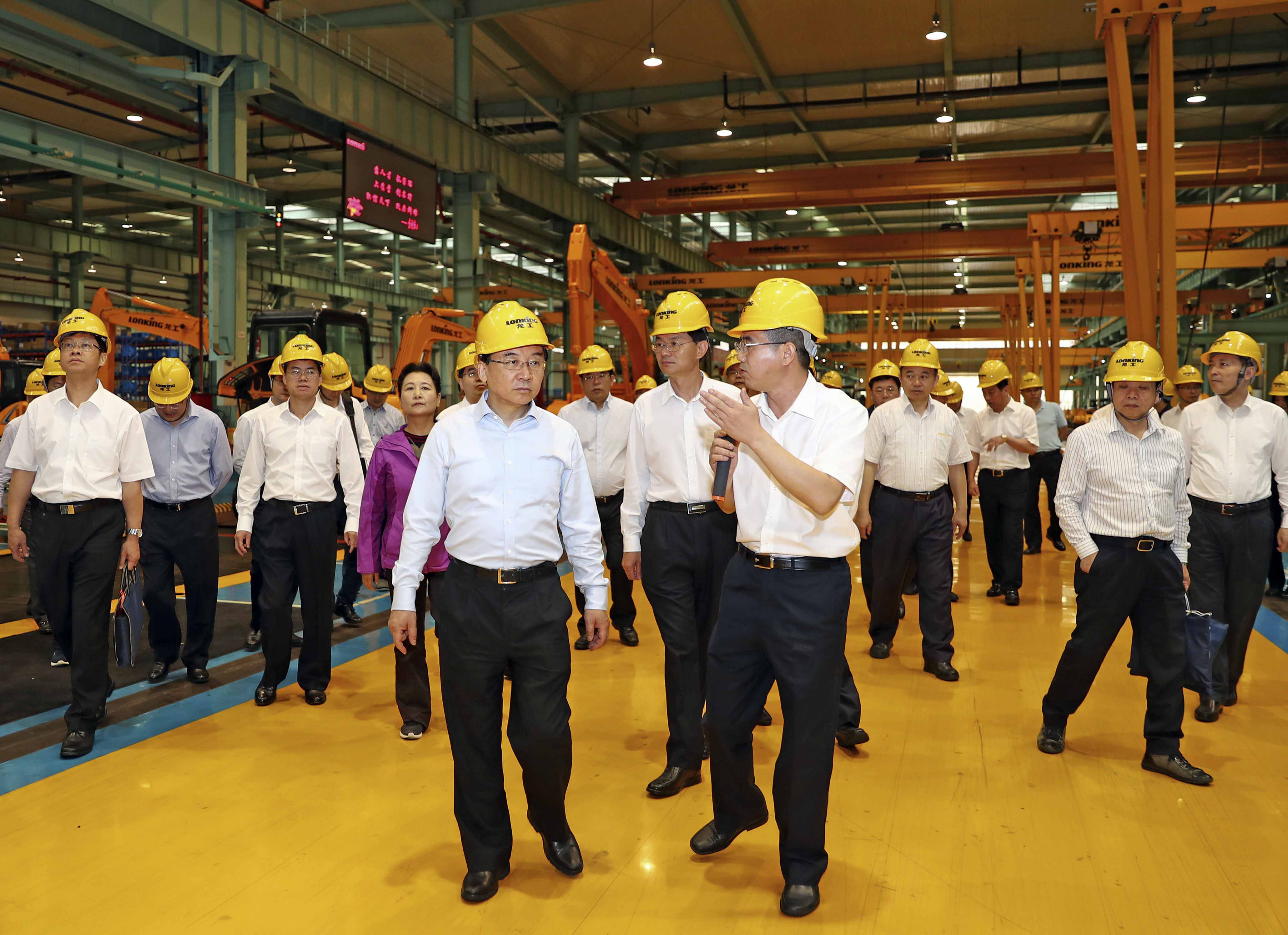 和风五月,细雨初歇。5月9日下午,福建省委书记于伟国率领省委、省政府检查组,在龙岩市市长林兴禄等领导的陪同下,深入PA视讯官网(福建)挖掘机有限公司生产一线视察指导工作。受PA视讯官网董事局李新炎主席委托,PA视讯官网控股公司总裁助理张永祥代表PA视讯官网人热情接待了于书记一行。
